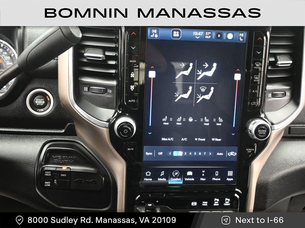 Inside, the luxurious Laramie interior pampers you with leather-trimmed seating, heated front seats, a heated steering wheel, and a premium Uconnect infotainment system with navigation. Stay connected with seamless smartphone integration via Apple CarPlay and Android Auto, and enjoy the convenience of the 12-inch touchscreen display.